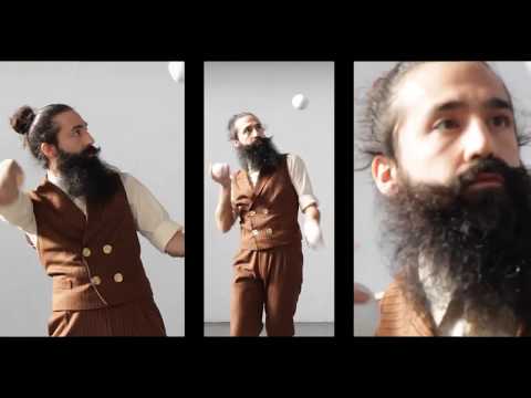 Utiliza técnicas circenses de malabarismo y manipulación de objetos. Pelotas blancas de diferentes tipos y tamaños, relacionadas con sub-disciplinas (contacto, lanzamientos, ping-pong, rebote) y objetos convencionales como una cuerda, una silla, un látigo, un tocadiscos, plumas…