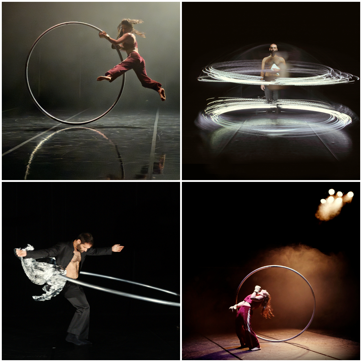 Con una concepción del movimiento diferente, Juan Ignacio Tula ha creado otra pieza unipersonal en Instante, en la que, como si fuera uno de esos místicos monjes derviches danzantes, con sus constantes movimientos giratorios, hace rotar el aro en un baile hipnótico, manejándolo como si fuera un hula hoop. Y así, ambos desafían las fuerzas que ellos mismos ponen en movimiento, sometiendo a sus cuerpos a un estado límite, del que regresan intactos.