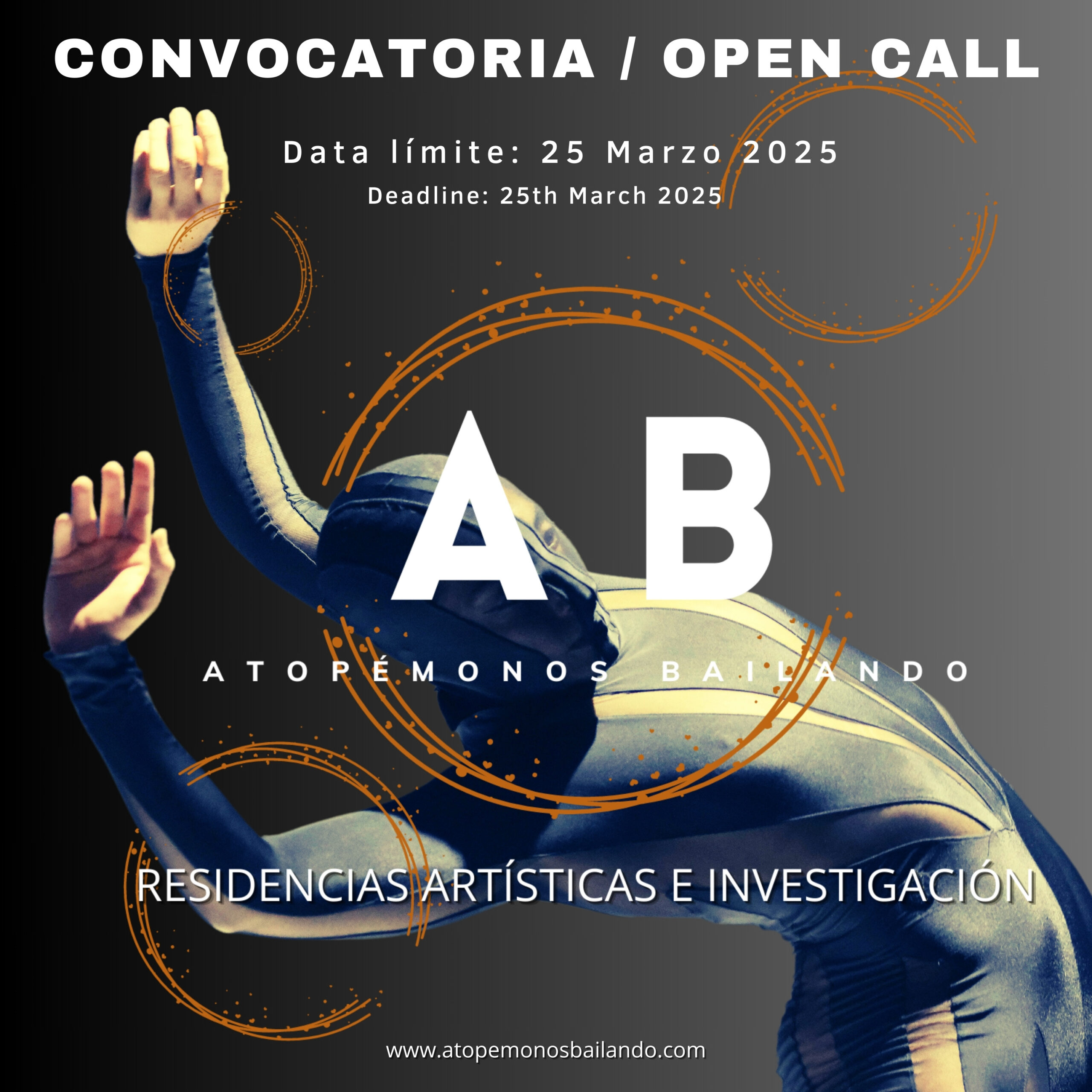 Se llama a profesionales de danza y artes del movimiento con sede en España y/o Portugal a presentar sus proyectos para la realización de 11 residencias artísticas y/o de investigación (se excluyen residencias técnicas) para ser realizadas entre los meses de abril a noviembre de 2025 (seis de ellas en Lugo, Galicia, y cinco en régimen de intercambio con estructuras de Portugal, España y Costa Rica):