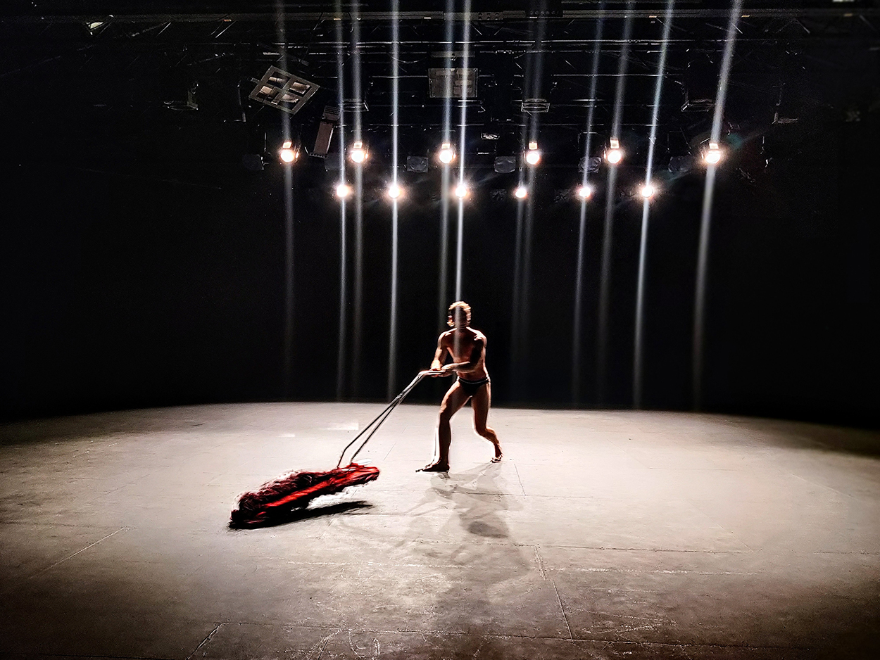 Ahora, tras un tiempo sin encontrarse en un espacio escénico, Silva (como bailarín) y Guerrero (como encargado del espacio musical, tanto con piano, flauta y voz, principalmente) volverán a reencontrarse en Cortegana gracias al proyecto de residencias artísticas de ‘Bailando en Plata’. ¿Cuál es el objetivo de este tiempo de trabajo en Cortegana? “El tiempo separados -explica Silva- nos ha servido para ver con distancia lo que tenemos y ahora entrar en la nueva residencia con objetivos claros, como por ejemplo cambiar la estructura general de la pieza, añadir al espacio musical un abanico más amplio de posibilidades, mi relación con la mopa (el objeto que usa durante la pieza) y buscar un final cerrado”.