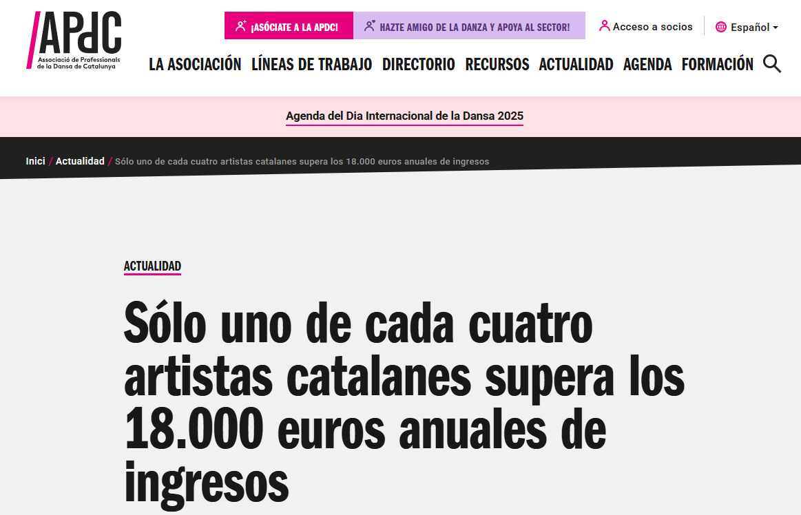 * Datos extraídos del Informe sociolaboral de actores/actrices y bailarines/as en España que publicó en 2024 la Fundación AISGE. https://www.dansacat.org/estudi-aisge-catalunya-2023/