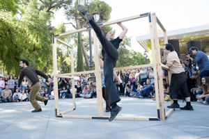 En la propuesta escénica del coreógrafo Arturo Parrilla, que parte de una escultura en madera, participan cuatro intérpretes