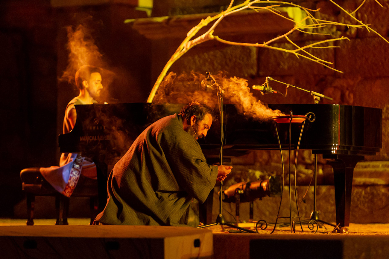 Durante la representación toma un especial protagonismo la Danza y la Música, en directo. La música, a cargo de Abraham Samino, que con maestría acarició las teclas del piano de cola para imprimir mayor o menor intensidad al drama. Es cierto que en algunos diálogos el piano sobraba y podía llegar a poner nervioso al espectador por no poder escuchar con claridad. La Danza, con coreografías de Gema Ortiz, también adquiere un protagonismo importante en el transcurso de la obra. Ortiz manejó a la perfección las situaciones en las que la muerte se hacía presente mediante los brazos y manos de Gema, a años luz del resto de integrantes que se atrevieron con una coreografía casi al inicio de la función y que pudo parecer complicada de entender, además de alargada en el tiempo. El excesivo uso de la “orchestra” durante el desarrollo de la función no fue del agrado de todos.
