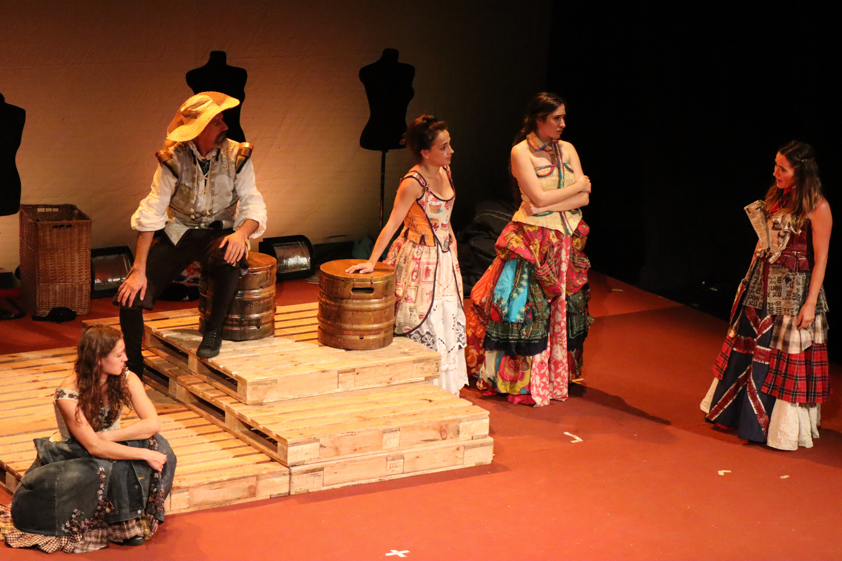 Que Calderón perdone a los malos rimadores y a los malos actores. A los que apuñalamos sus versos para escribir crónicas o declamarlos malamente. Pero bien valen de excusa, como ‘La Bojiganga’, el montaje de la compañía Teatro del Cuervo que hizo parada dentro de su gira en la Feria de Teatro de Castilla y León. Bajo el lema “aventuras y desventuras de una compañía del siglo de oro por la españa del siglo xxi» estas cuatro actrices y un actor que forman el elenco tratan “de mantener viva esa llama del teatro que parece no importa a nadie más”, camuflando entre versos de Lope, Calderón o Cervantes la historia cotidiana de cientos o quizá miles de actores, pintores, cantantes que dudan si subirse de nuevo a la carreta del titiritero o quedarse al borde del camino dándose por vencidos.