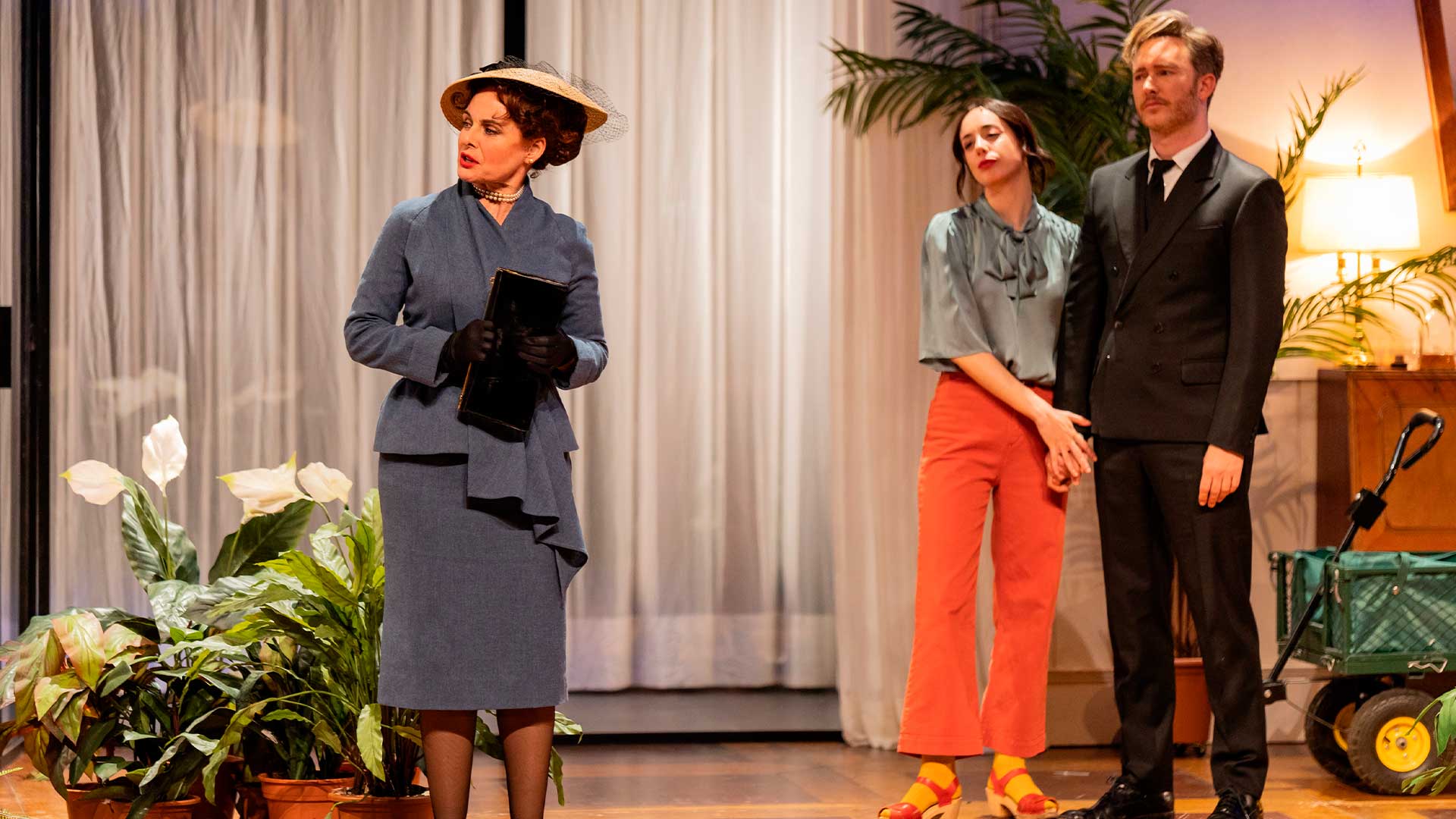 Para lograr que funcionen armoniosamente todos los engranajes es imprescindible contar con un reparto coral y entregado como el dispuesto. Cada miembro del elenco ofrece una interpretación genuina de sus papeles, que contribuye a la cohesión y la fuerza del espectáculo en su conjunto. Pablo Rivero cautiva al público con su versatilidad y profundidad interpretativa. Como John Worthing, ofrece una combinación perfecta de seriedad encanto y rectitud mostrando la dualidad del personaje con una habilidad impresionante; mientras que como «Ernesto» despliega un carisma y una picardía irresistibles para el espectador. Este conocido actor televisivo domina cada arista del personaje, desde sus preocupaciones existenciales hasta sus instantes más cómicos, y firma una actuación sobresaliente. Júlia Molins cautiva al público con su elegancia natural en el papel de Gwendolen Fairfax. Su interpretación es sofisticada y llena de vitalidad, capturando a la perfección la determinación y la pasión del personaje. Esta actriz, con trabajos audiovisuales y más de una decena de montajes, crea una Gwendolen convincente y compleja, navegando con gracia entre la coquetería y la sinceridad en sus interacciones con los demás personajes. Su química con Rivero es palpable, y juntos tejen una atmósfera de tensión y complicidad.