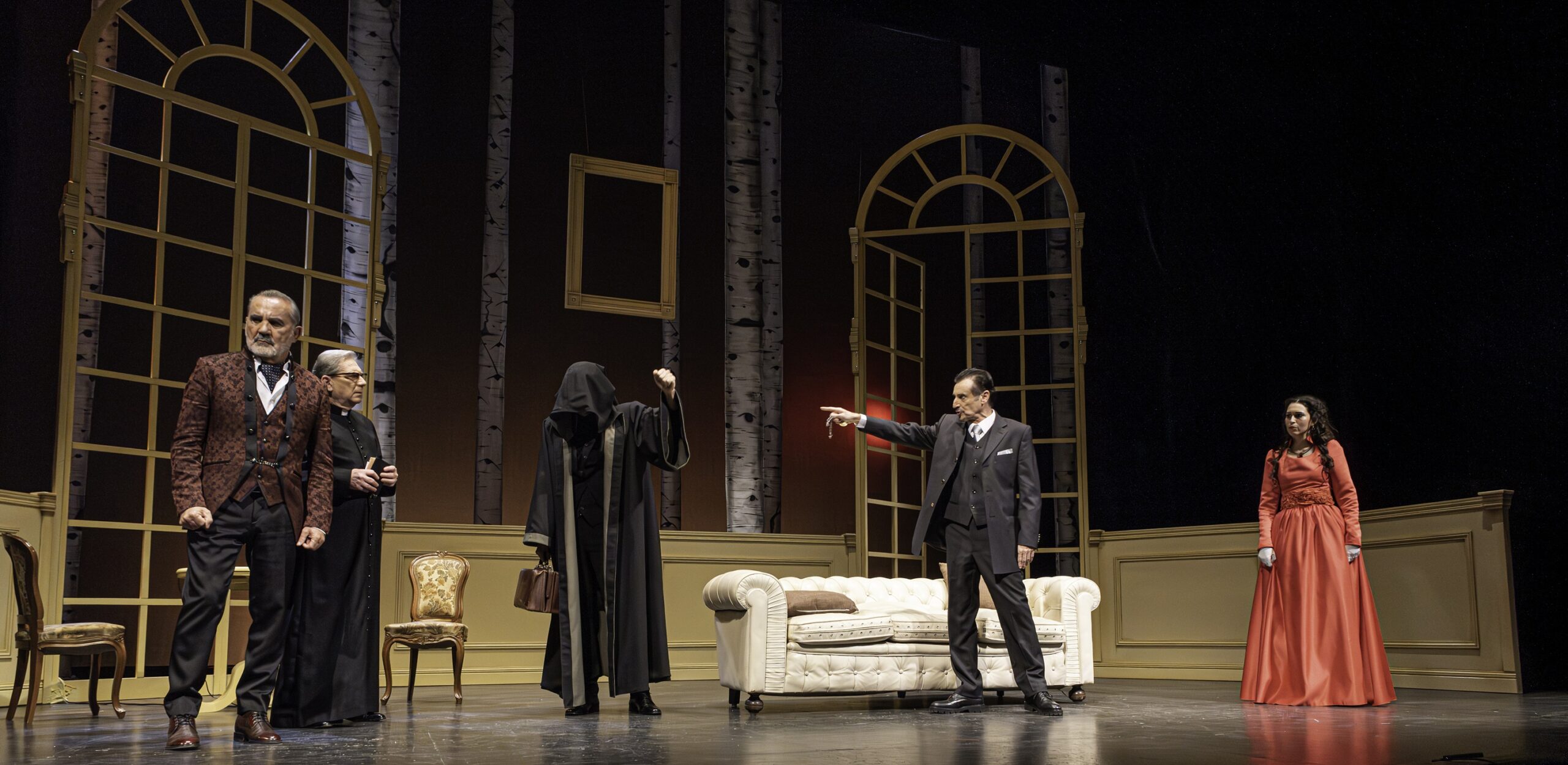 En un montaje como “Magia”, donde la palabra domina y el espacio se mantiene prácticamente inalterable, el componente técnico adquiere una función estratégica: debe sugerir sin abrumar, acompañar sin distraer. Pablo Camuñas firma una escenografía parca pero funcional, que sitúa la acción en una estancia elegante, indefinida en el tiempo, con ciertos ecos decimonónicos. No hay ornamento superfluo, pero sí una disposición efectiva que permite a los actores moverse con lógica dentro del debate constante. El verdadero revulsivo visual llega desde la iluminación y dirección técnica de Rafael Echeverz, que asume un papel esencial en la creación de atmósfera. Algunos de los efectos “mágicos” —integrados con inteligencia en el propio diseño lumínico— irrumpen en momentos clave para romper la linealidad dialéctica. Estos recursos van más allá del ilusionismo escénico y generan desconcierto, extrañeza, preguntas. Luz y sombra se convierten aquí en extensiones de las ideas: lo visible frente a lo invisible, lo revelado frente a lo oculto.