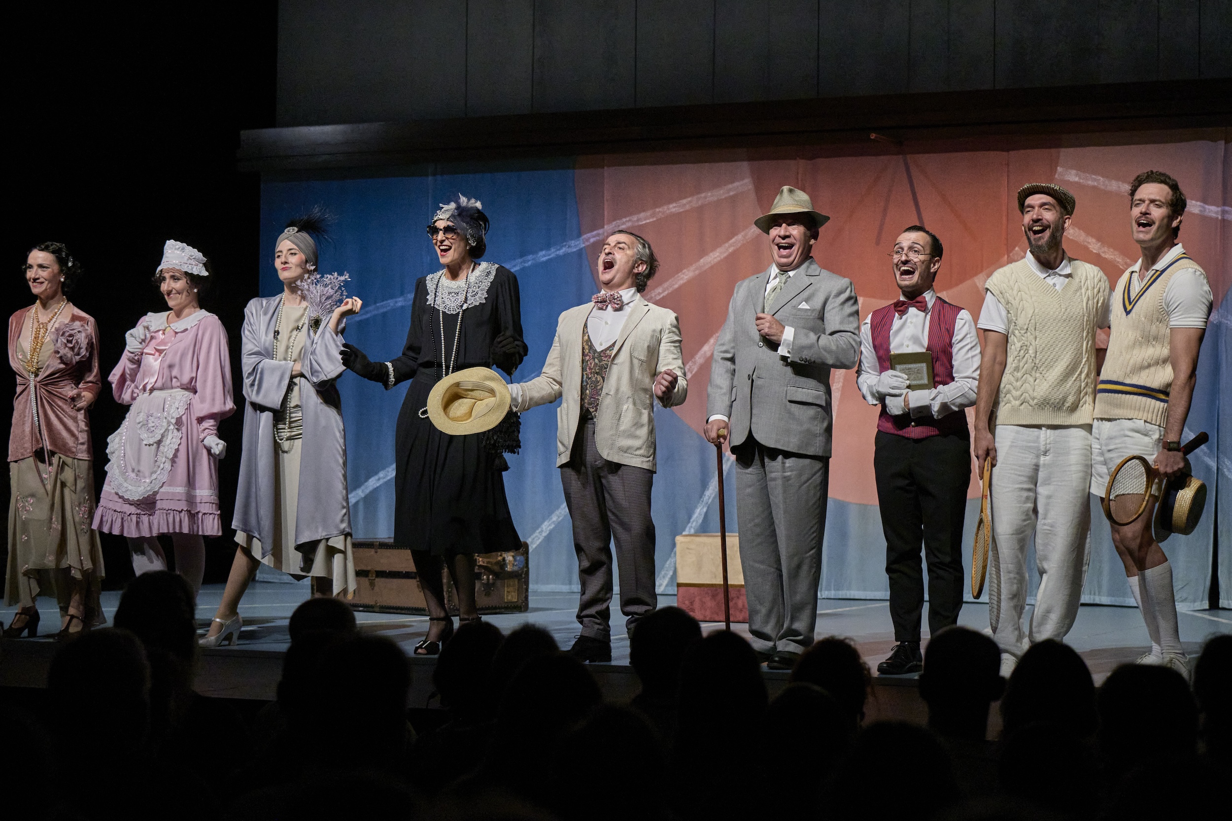 La comedia italiana, según cuentan en la propia función, forma parte de una trilogía que aún se desconoce si la compañía de Vasco completará en próximas temporadas. Goldoni, rodeado en su época por la Comedia del Arte italiana, fue bastante contrario y crítico con esa forma de hacer teatro, y se centró en dar gran relevancia a la creación y descripción de personajes, dotando a sus obras de cierta contemporaneidad y dotando a los personajes de gran realismo. Y en esta función, como no podía ser menos, lo anterior queda palpable dentro de los nueve personajes que la componen.