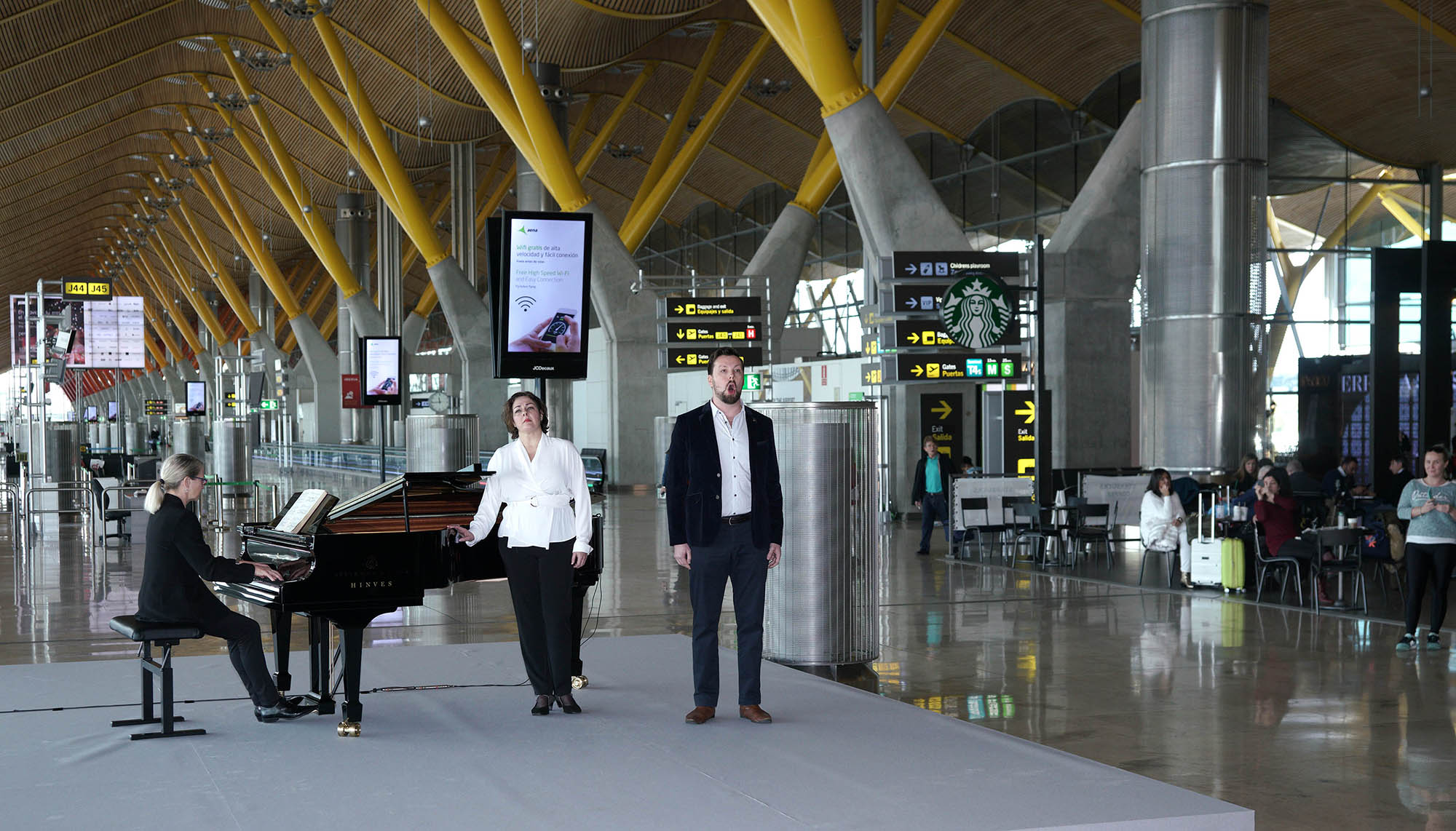 La firma del convenio, que tuvo lugar en el Aeropuerto Adolfo Suárez de Madrid, contó con una actuación sorpresa para los viajeros con arias de Turandot