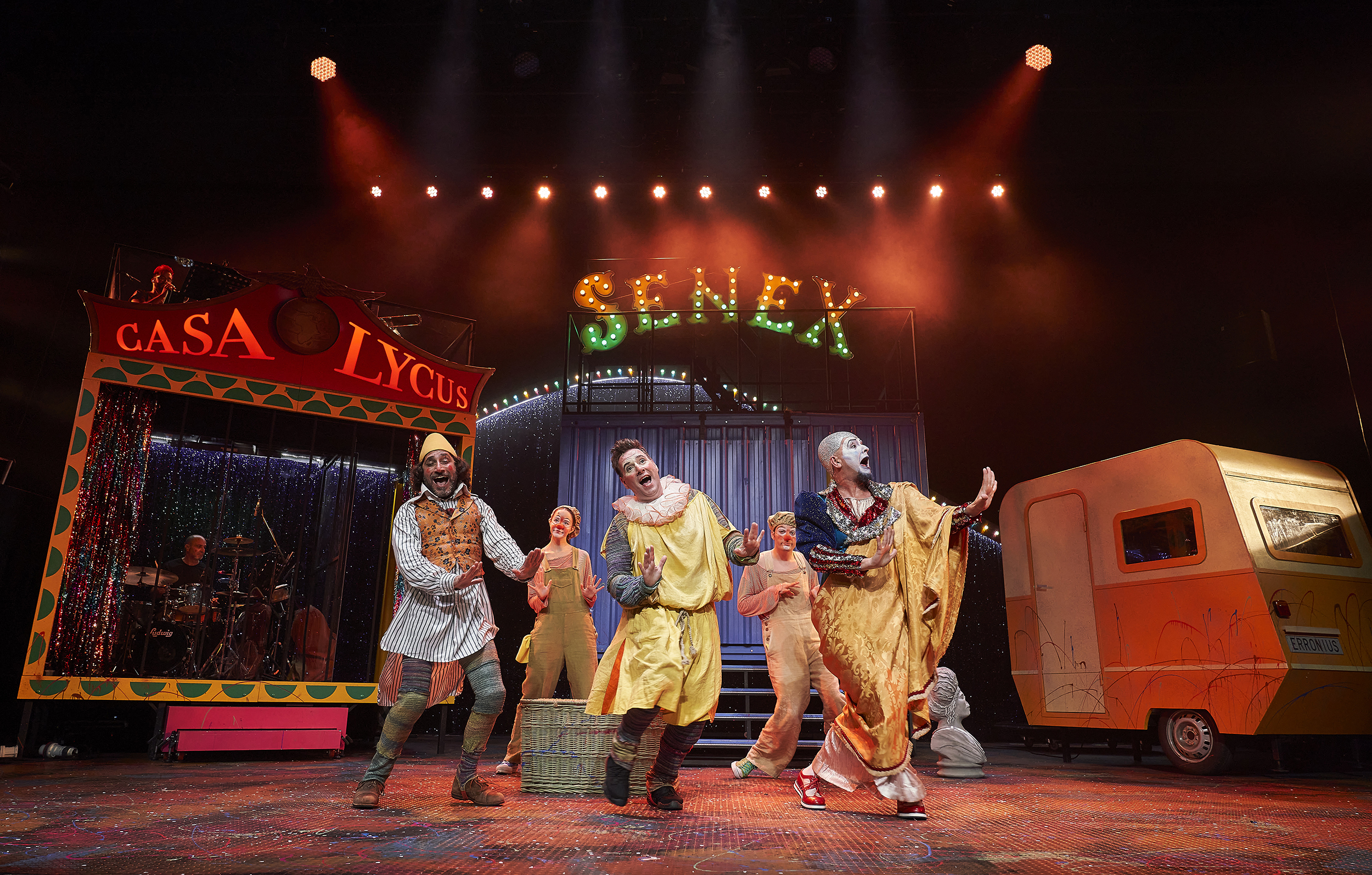La nueva producción de Focus, adaptada por Daniel Anglés y Marc Gómez, dirigida por el propio Daniel Anglés y protagonizada por Carlos Latre –“el hombre de las mil caras” popular por sus imitaciones entre otros en el programa de televisión Tu cara me suena y que se descubre aquí por primera vez como gran intérprete de comedia musical- presenta una compañía de circo dispuesta a todo para hacer reír y sorprenden al público representado Golfus de Roma.