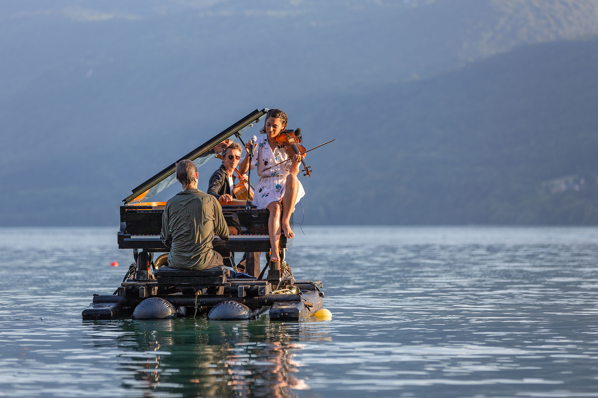 El piano del lago revoluciona el marco del concierto adaptándose al paisaje en lugares inauditos que promueven un intercambio humano y una interacción personal basada en la poesía, encuentros musicales en escenarios con imágenes inéditas y sonidos sorprendentes.