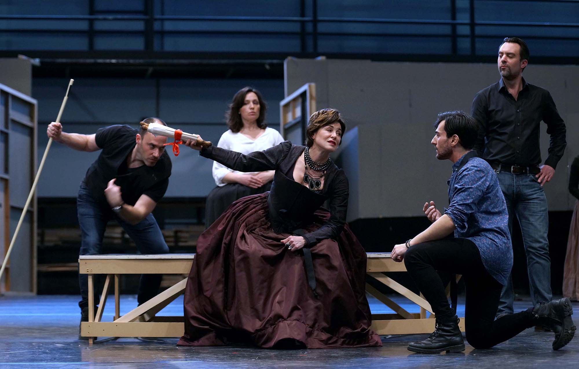 David McVicar sitúa a la Reina en el centro de un mundo palaciego corrompido e hipócrita, que ella controla con mano de hierro, en la misma medida en que es atentamente vigilada por súbditos y cortesanos, en una Europa inmersa en luchas religiosas y territoriales.