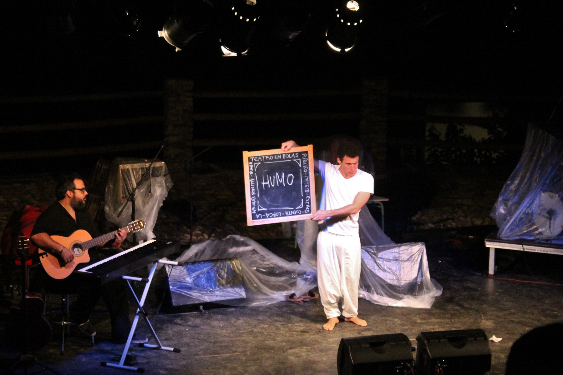 Este espectáculo surge de Talent Madrid. Entre los más de cuatrocientos proyectos de artes escénicas, se cuela en la final un formato que sorprende a público y jurado por su sencilla puesta en escena: fondo oscuro, piano de cola, pianista y actor. La gente ríe y aplaude sin parar y el mismísimo presidente del jurado, Albert Boadella, estalla en carcajadas. En esos tiempos, Teatro en bolas era solo un experimento que, a día de hoy, ha evolucionado hasta asentarse como una obra que no deja indiferente a nadie. Ha pasado por el Festival Me vuelves Lorca (en dos ocasiones), el Festival Internacional de la Oralidad, Villa de Robles, El Festival del Humor de Meco, o espacios madrileños como Teatro del Barrio, Sala Mirador, Sala Tú y un largo etcétera.