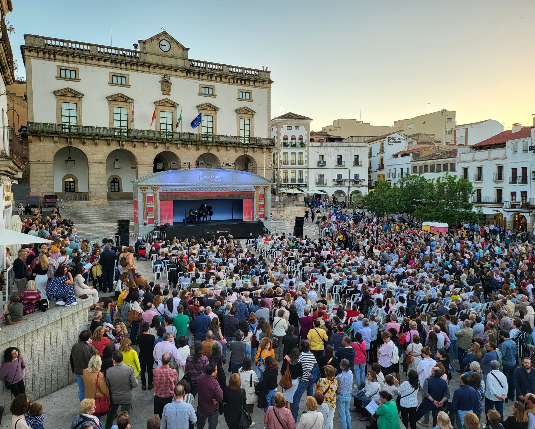 El Ayuntamiento de la ciudad colocó 1200 sillas para que el público pudiera disfrutar de las actuaciones de la soprano Rosa Gomariz, la mezzosoprano Alejandra Acuña ,el barítono Román Bordón y la pianista Cristina Sanz, artistas que participaron en el programa Crescendo, de la Fundación Amigos del Teatro Real, que inicia este año su quinta edición y por donde han pasado ya 99 jóvenes de 20 nacionalidades.
