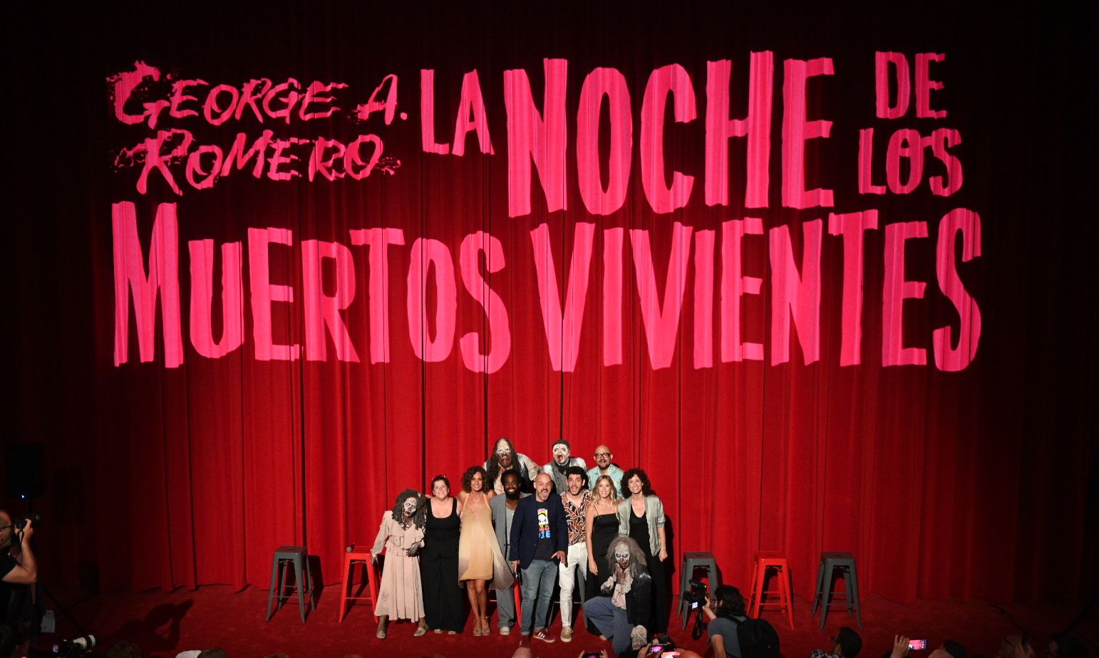 Posteriormente Daniel Anglès ha conversado con Roger Julià, intérprete y director de la obra, y Víctor G. Casademunt, intérprete y ayudante de dirección, de lo que ha supuesto la creación del espectáculo y acto seguido se ha presentado, en primicia, al resto del reparto del espectáculo, desvelando el nombre de los y las protagonistas de la protagonista de la protagonista de la protagonista. Quienes no han faltado tampoco a la cita han sido los zombis, que han aparecido por sorpresa en la platea del cine para intentar zamparse a los presentes, ofreciendo así una pequeña cata de lo que será la experiencia inmersiva de La noche de los muertos vivientes ¡LIVE!.