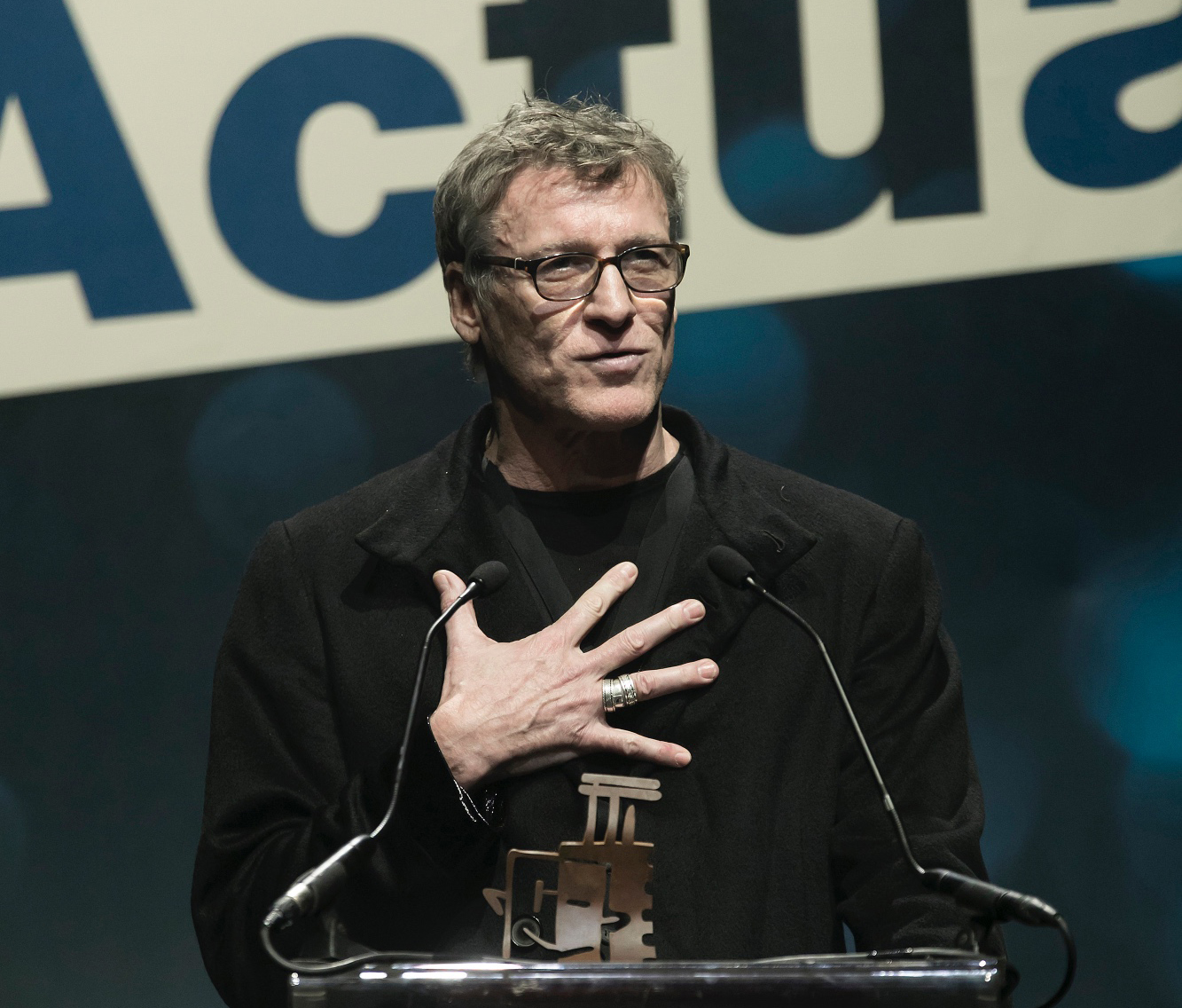 El intérprete gallego, hijo del escritor Manuel Rivas y muy precoz en el inicio de su andadura interpretativa, protagonizó un lindo discurso en el destapó algunas elocuentes anécdotas de aquellos primeros pasos. Como cuando en una primera lectura de un texto, ya en Madrid, tuvo un pequeño encontronazo con quien le espetó que más que “un galán joven” parecía, “en todo caso, un gañán joven”. Y también se acordó de lo que le comentó su entrenador de fútbol cuando tenía 14 años durante el descanso de un partido que su equipo ganaba por tres a cero: “Tienes dos virtudes. Nadie corre tanto como tú y nadie lo hace con menos sentido”. Y añadió: “A veces tengo la sensación de correr mucho sin saber hacia dónde voy”. “Dedico este premio a Alfredo Sanzol y Miguel del Arco, a mis compañeros de Jauría; a Julia Gutiérrez Caba, que encarna todo aquello a lo que me gustaría llegar a parecerme en esta profesión…, ¡y a todos los gañanes jóvenes!”.
