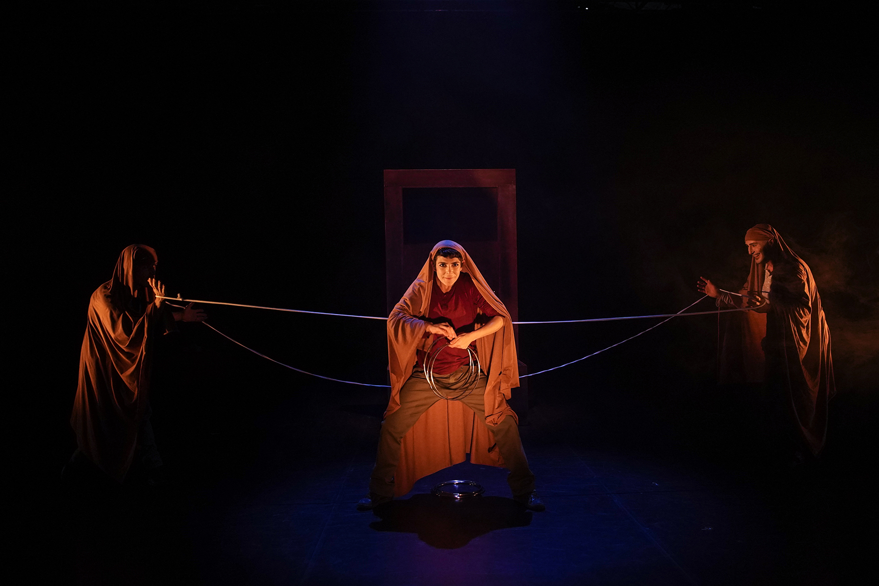Al día siguiente, y en el mismo espacio, la Plaza de las Veletas, la Escuela Superior de Arte Dramático de Extremadura representaba Hamlet, con adaptación de Charles Delgadillo y dirección de Carmen Galarza. El proyecto “Hamlet”, como Taller de Fin de Estudios de la especialidad de Interpretación, surge con la idea de realizar un ejercicio esencial de arte actoral, ser “yo” en lo que Stanislavski denominaba “la piel ajena”, es decir, el personaje. “Yo” es la persona que ocultamos tras nuestro personaje. En palabras de Peter Brook “si lo que nos atrae del teatro es que es un espacio donde personas van a ver a personas, la genialidad de Shakespeare radica en que sus personajes son personas”. Charles Delgadillo realiza una adaptación ritmada sobre la traducción de Ángel-Luis Pujante, en la que hemos puesto la carga ideológica en lo siguiente: dejar de tratar a la otra persona como a mí misma solo desemboca en “actos sangrientos e inhumanos”. Como equipo, sabemos la dificultad a la que nos enfrentamos, una de las obras más insignes de la literatura dramática y un espacio vacío. Como armas solo nuestro trabajo, respeto y amor al teatro.