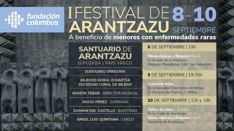 Fundación Columbus celebrará del 8 al 10 de septiembre en distintos puntos de Euskadi la primera edición del Festival de Arantzazu, una iniciativa benéfica que nace con el propósito de recaudar fondos para hacer accesibles las Terapias Avanzadas a menores afectados por enfermedades raras que hasta el momento no tenían tratamiento y, ahora, sí la tienen...