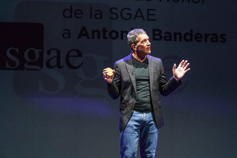 Antonio Banderas recibió este domingo la Medalla de Honor de la Sociedad General de Autores y Editores (SGAE) de manos del presidente de la entidad, Antonio Onetti, en un acto privado que tuvo lugar en el Teatro del Soho de Málaga. La ceremonia ha podido verse en el transcurso de la gala de los Premios Max de las Artes Escénicas celebrados hoy, lunes, en el Teatro Cervantes de la ciudad andaluza...