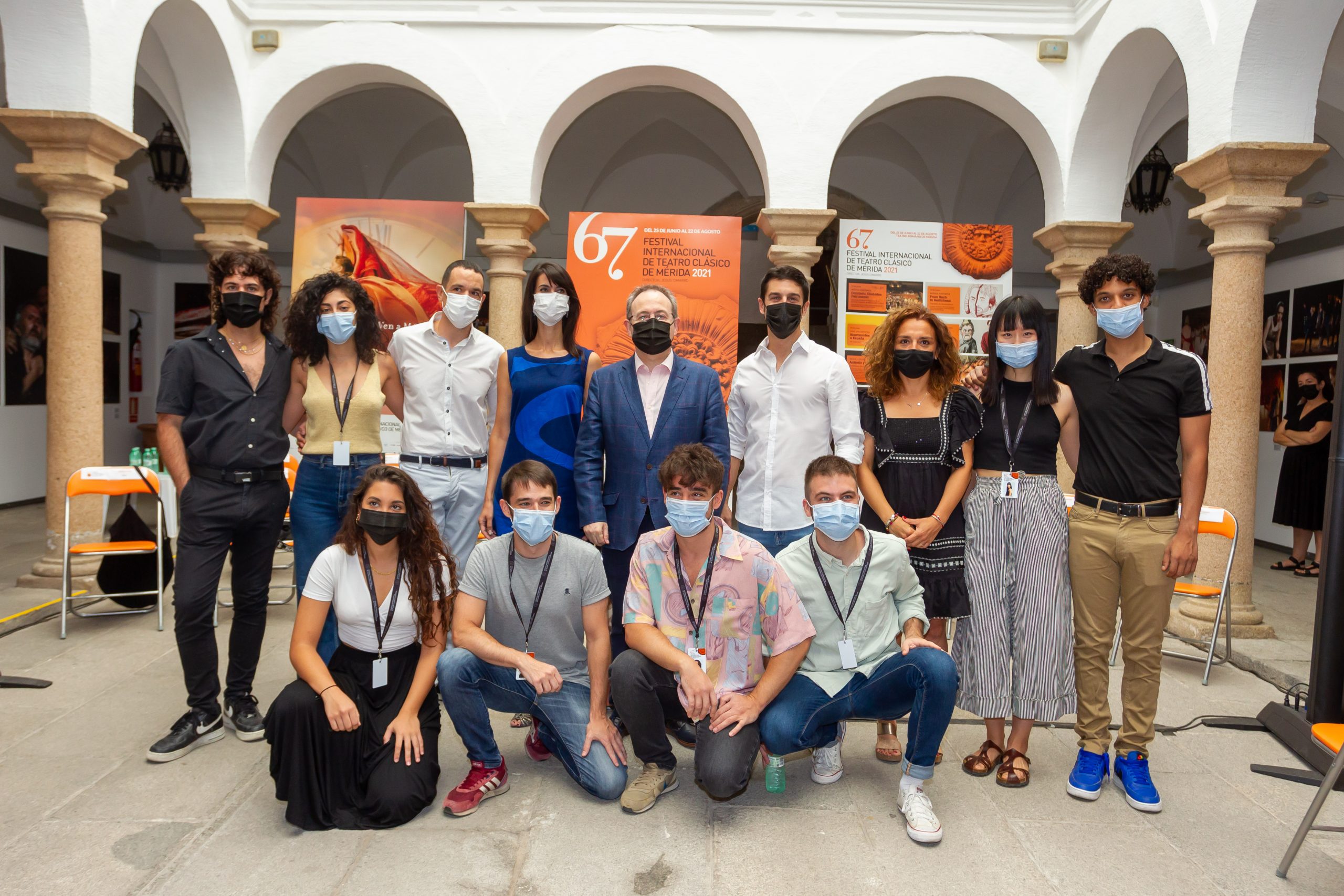 En la presentación, el director del Festival, Jesús Cimarro, ha estado acompañado por todo el elenco de la obra; el director de la misma y director adjunto del Teatro Español, Luis Luque; el autor, Paco Bezerra; Miriam García Cabezas, secretaria general de Cultura y Silvia Fernández, concejala de Cultura del Ayuntamiento de Mérida.