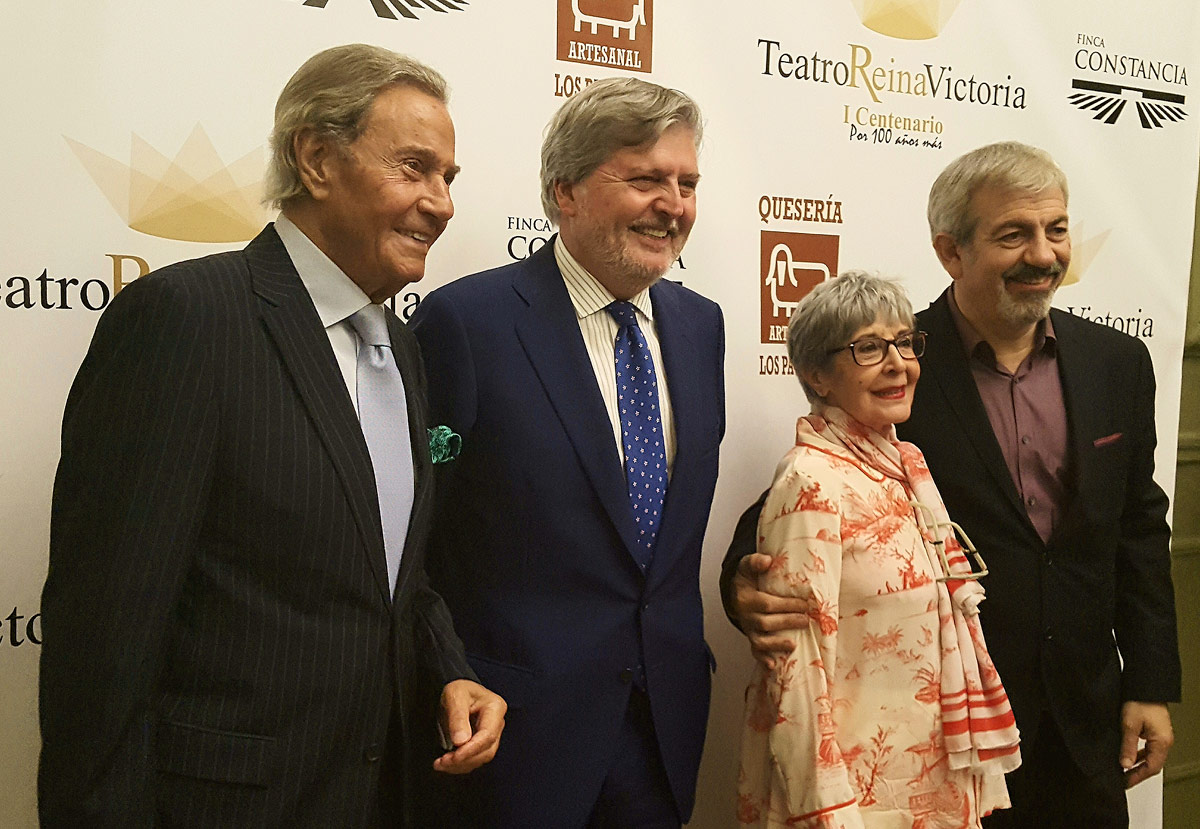 Los actores Concha Velasco y Arturo Fernández han recogido este martes, durante la Gala Final del Centenario del Teatro Reina Victoria de Madrid, las butacas con su nombre, que ocuparán el patio del teatro, de manos del ministro de Educación, Cultura y Deporte, Íñigo Méndez de Vigo. En la entrega, que ha clausurado los actos de celebración del centenario del edifico, se ha presentado también un libro que homenajea la sala.