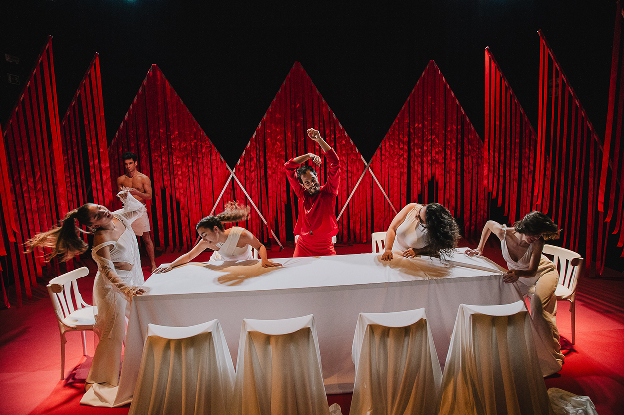 El banquete es un plato tradicional y contundente al que La Ferviente Compañía da una presentación de vanguardia para reflexionar sobre esta época, en la que somos tan conscientes de la construcción de nuestra imagen pública, y sobre las maneras en las que nos definimos y relatamos.