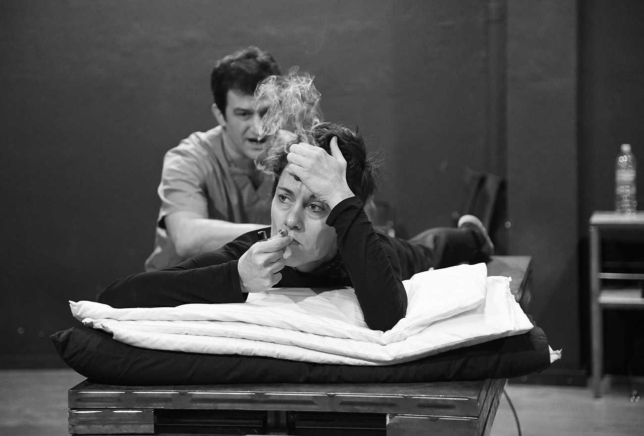 Desayuna conmigo es la historia de personajes que son como nosotros, como nuestros amigos, que nos cuentan cómo nos relacionamos en la cama, en la intimidad, porque en lo íntimo aparece lo político, lo espiritual, lo antropológico, lo sociológico… Lo íntimo es solo la punta del iceberg. Los personajes de Desayuna conmigo, espejos más o menos cóncavos de nosotros mismos, transitan ese espacio doloroso entre la felicidad que tienen a su alcance y la felicidad deseada. Y ahí es donde entra la promesa envenenada del pop como encarnación cotidiana de esas mentiras que nos contamos a veces para que la vida nos duela menos, pero que en el fondo no dejan de ser sal para nuestras heridas. Pero Desayuna conmigo es también una obra que habla sobre la precariedad económica y emocional, es el manifiesto que intenta validar el relato de una generación heredera de la crisis, de una generación que vivió el final de una fiesta: