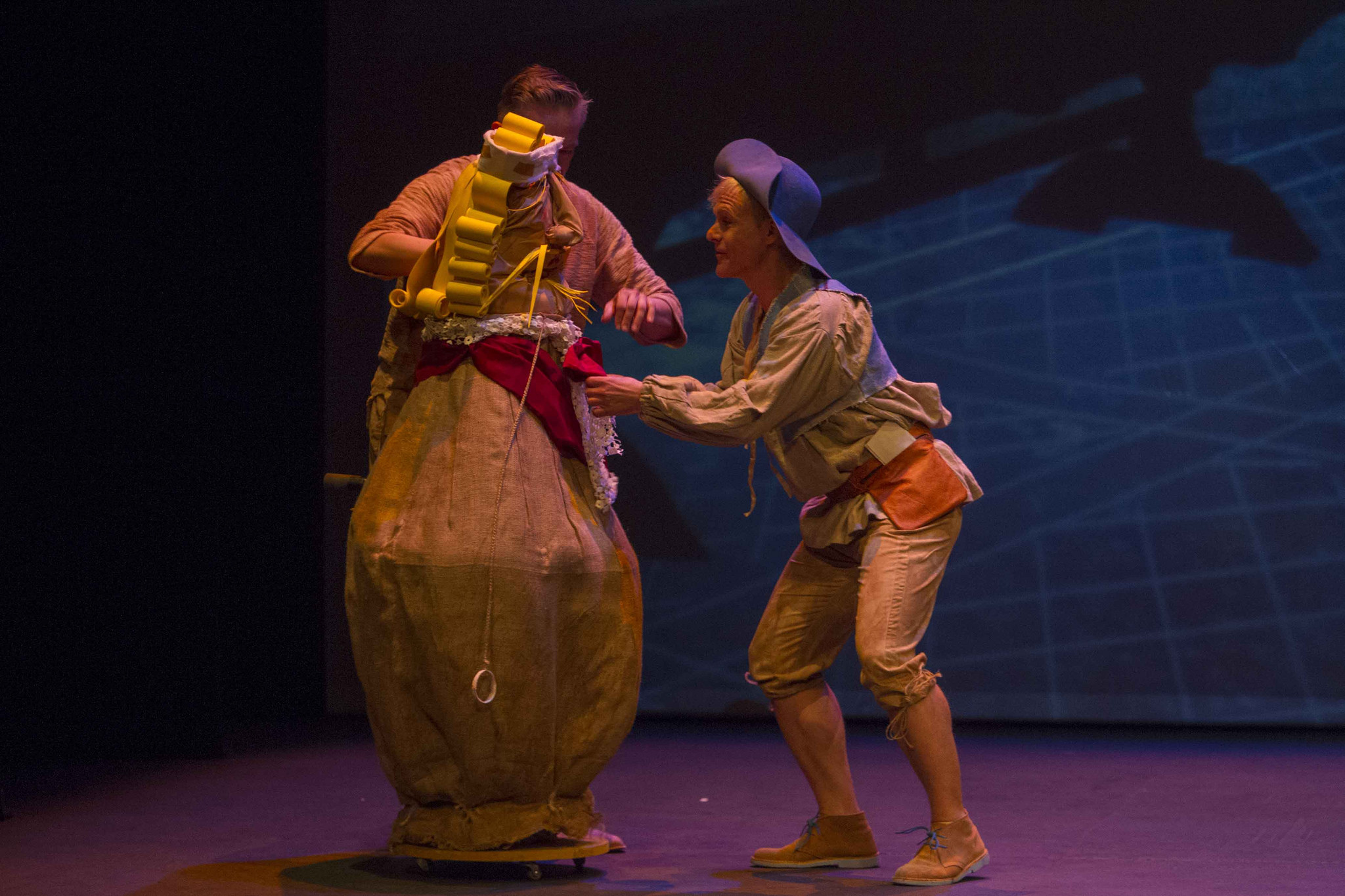 Claudia Salas, Susana Martíns, Enrique Meléndez y Antonio Ponce, daban vida a nada más y nada menos que ocho muñecos realizados por Mónica Florensa, encargada también de las proyecciones y del vestuario. Ocho seres inertes que cobran vida de la mano de estos cuatro actores que brillan con luz propia detrás de las marionetas, con cabeza y cuerpo, pero que usan los propios brazos y manos de los actores y actrices para expresar, además de la voz. Y en este apartado destacar a Antonio Ponce, que pone voz a la criada, una criada gallega.